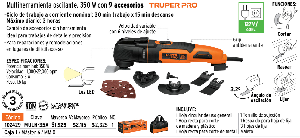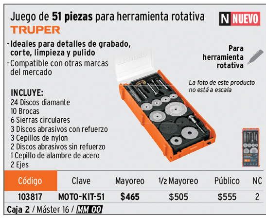 Todos nuestros productos cuentan con garantía. Las cantidades de empaques (cajas o atados) y máster, pueden cambiar y serán ajustadas en el sistema de captura de pedidos.