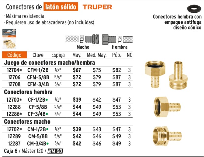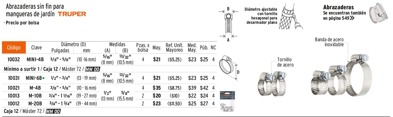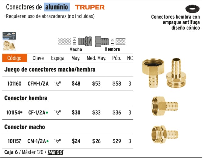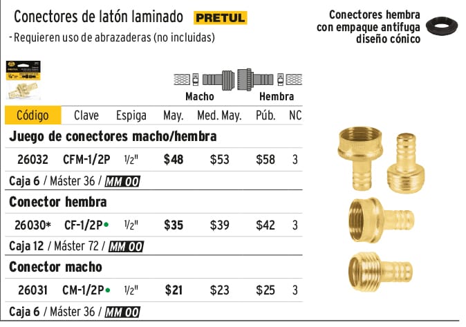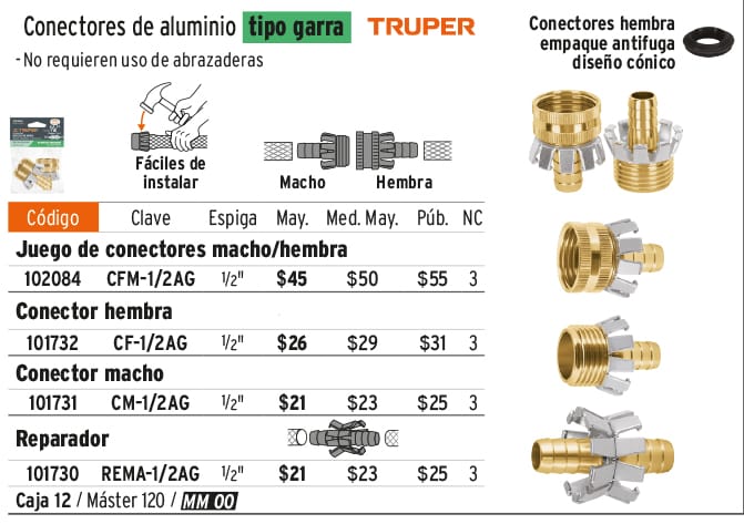 Accesorios para riego, conexiones para manguera de jardín y abrazaderas