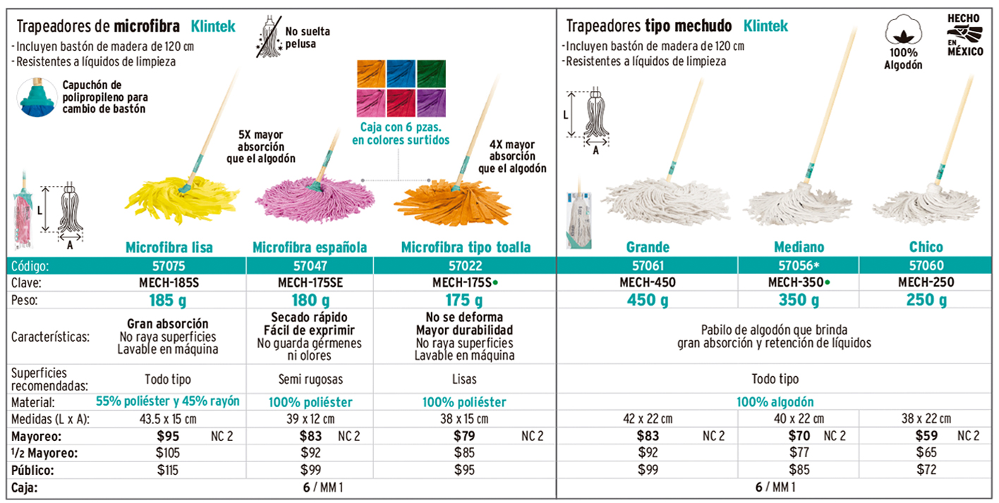 Artículos de limpieza / Trapeadores, jaladores, recogedores, atomizadores, cepillo sanitario, pastillas sanitarias y desinfectantes
