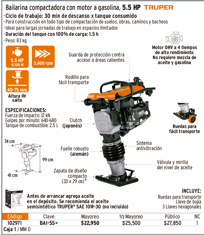 Bailarina compactadora, vibrador para concreto y ahoyadora, revolvedora de concreto