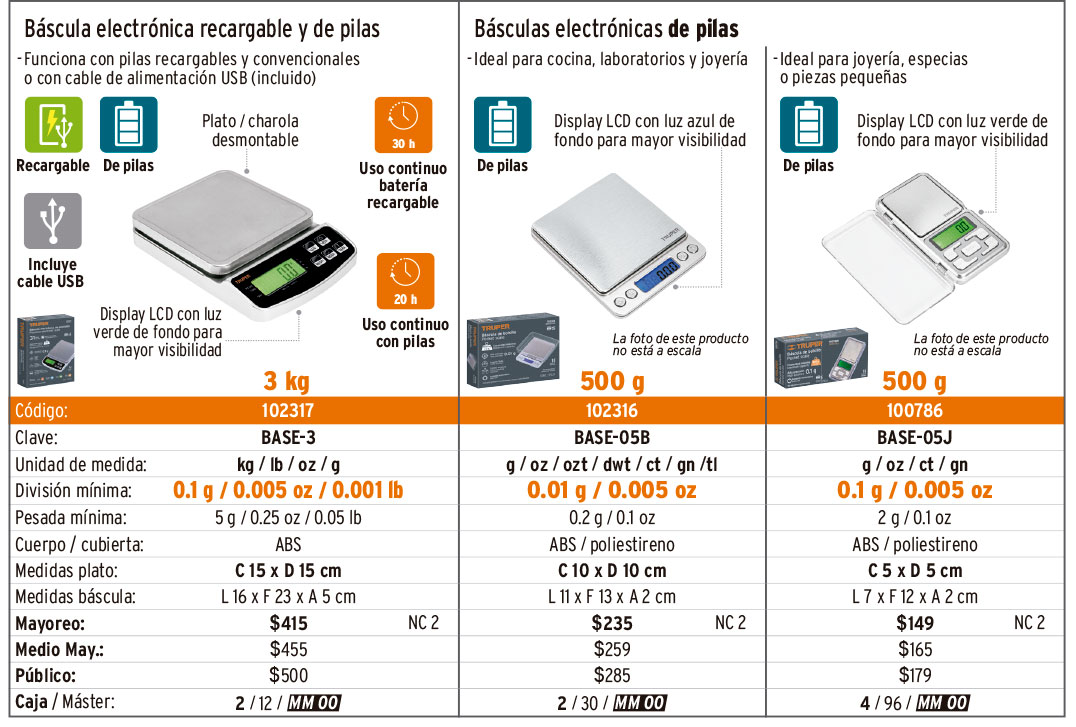 Básculas para cocina y de alta precisión
