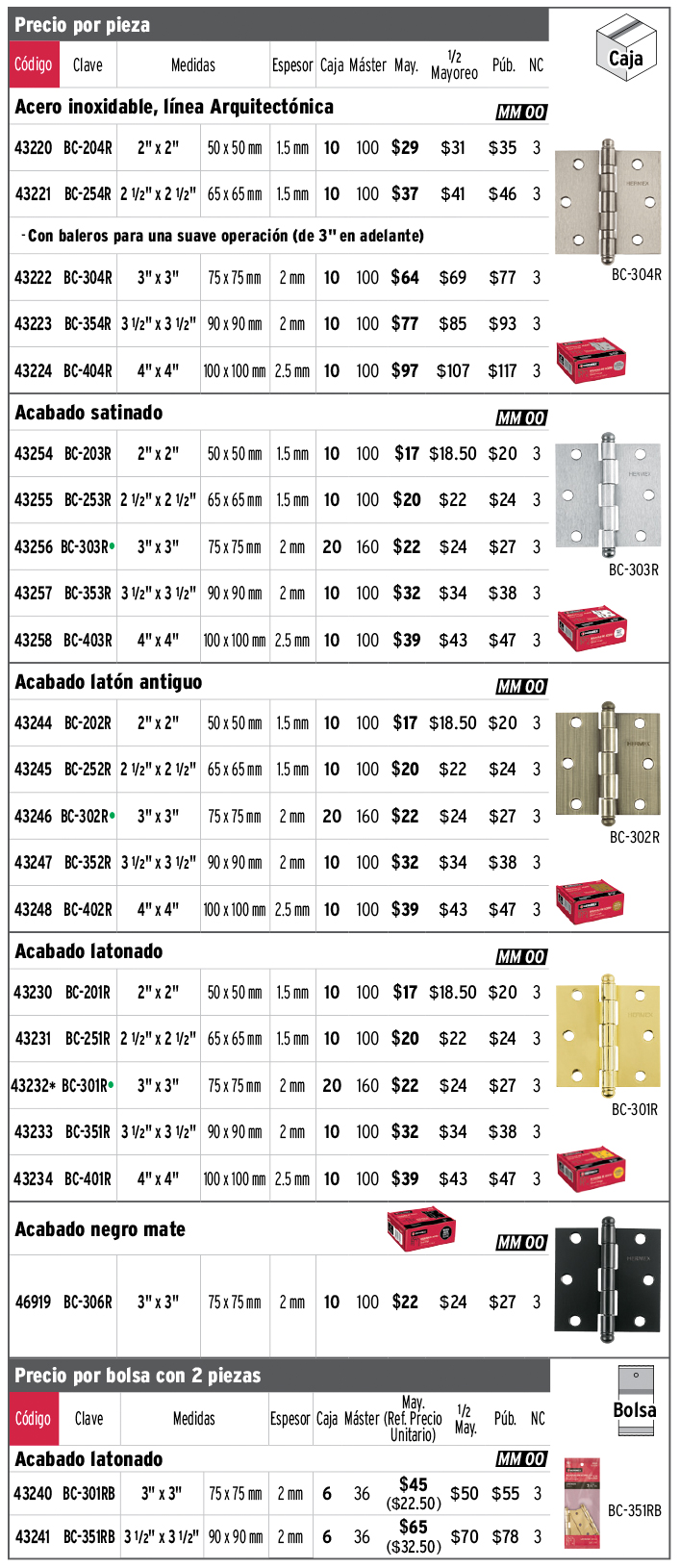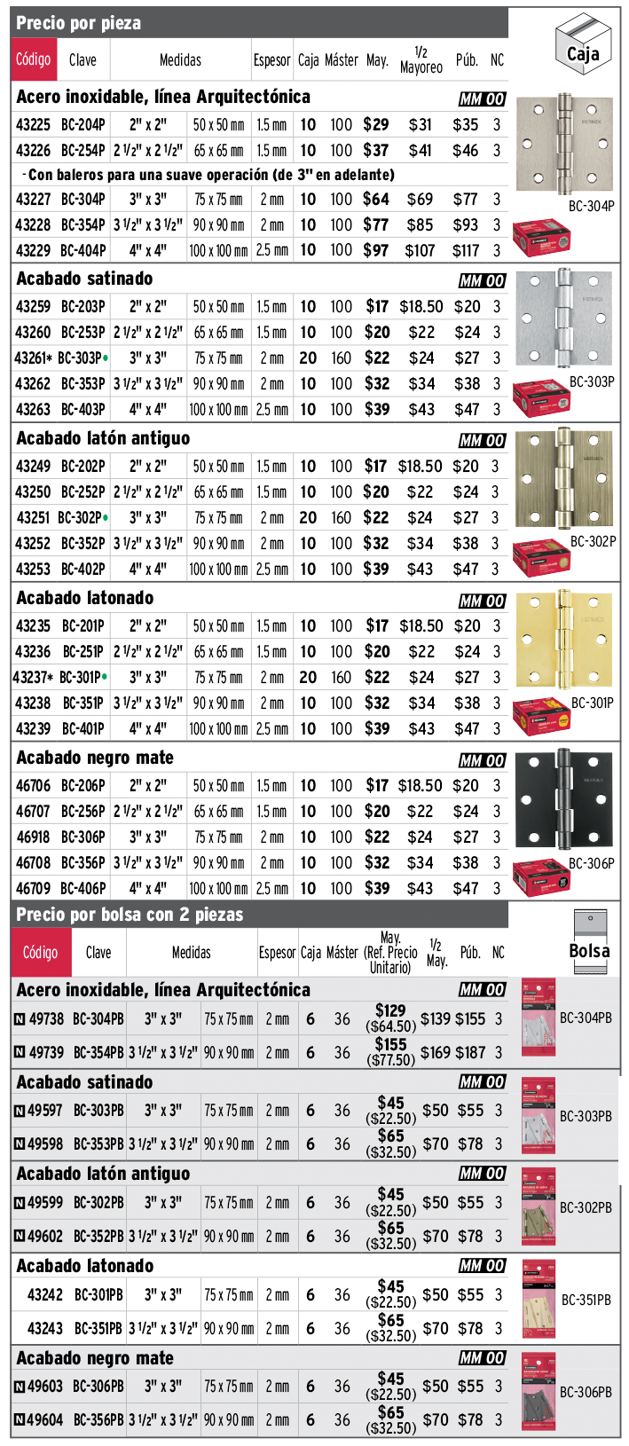 Bisagras cuadradas