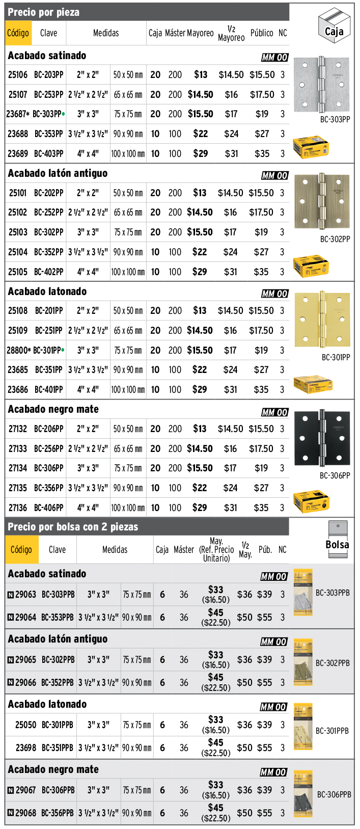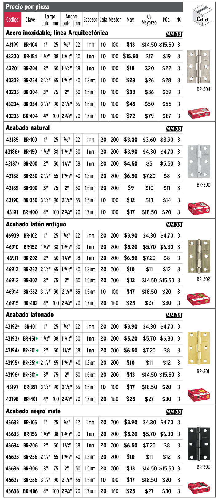 Bisagras cuadradas y rectangulares