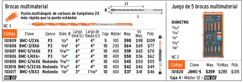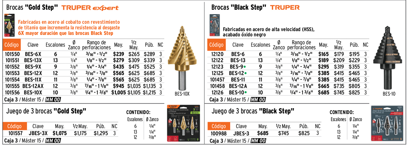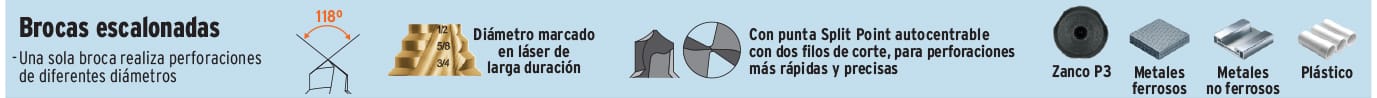 Brocas escalonadas, para vidrio, azulejo y multimaterial