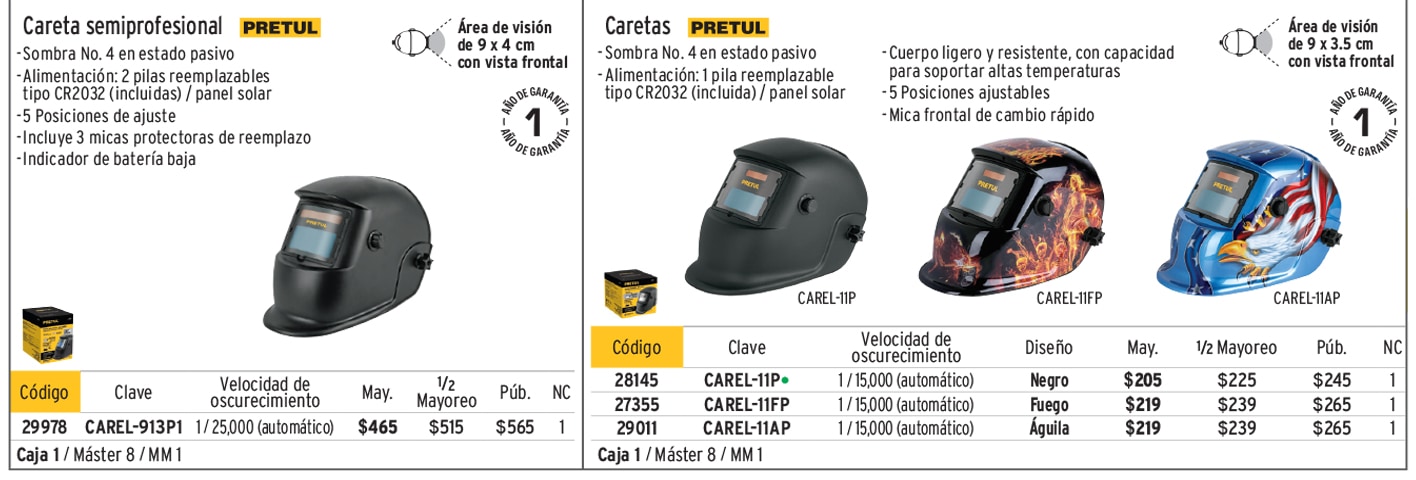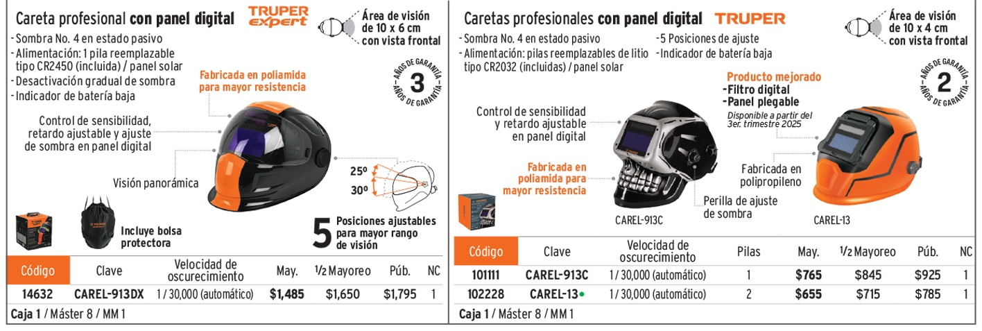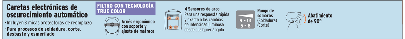 Caretas para soldar electrónicas, de oscurecimiento automático y con lente abatible