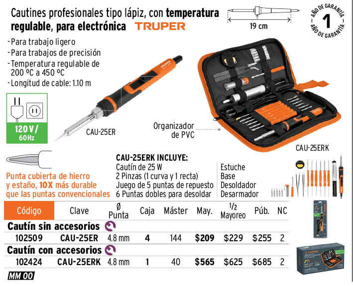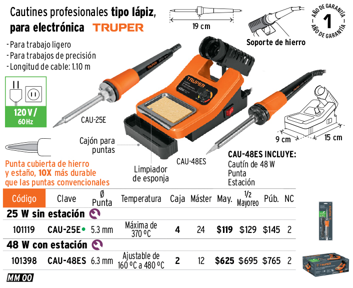Cautines tipo pistola, tipo lápiz y para electrónica