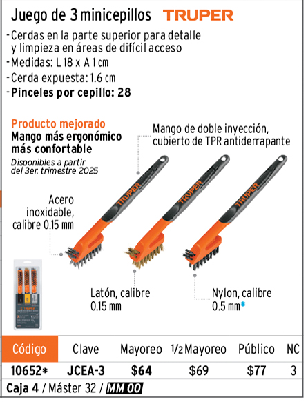 Todos nuestros productos cuentan con garantía. Las cantidades de empaques (cajas o atados) y máster, pueden cambiar y serán ajustadas en el sistema de captura de pedidos.