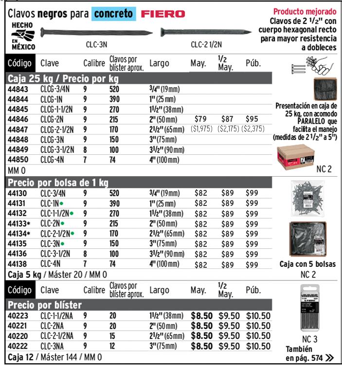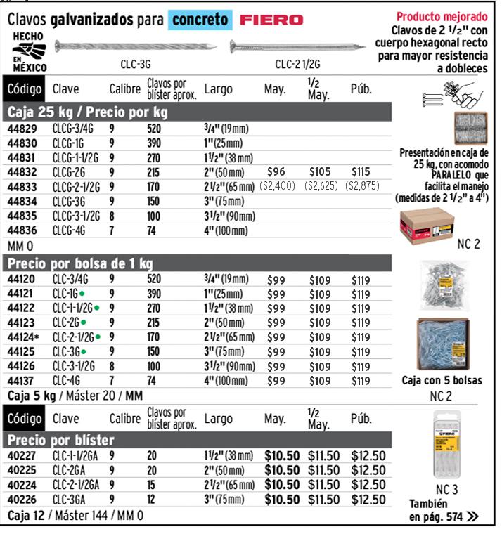 Clavos para madera y concreto