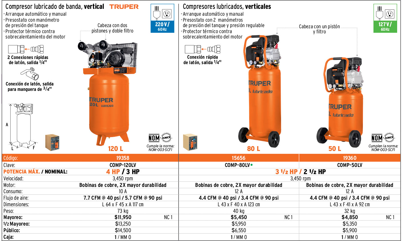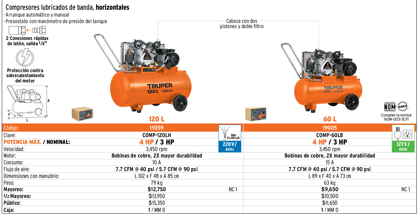 Compresores de aire verticales y horizontales