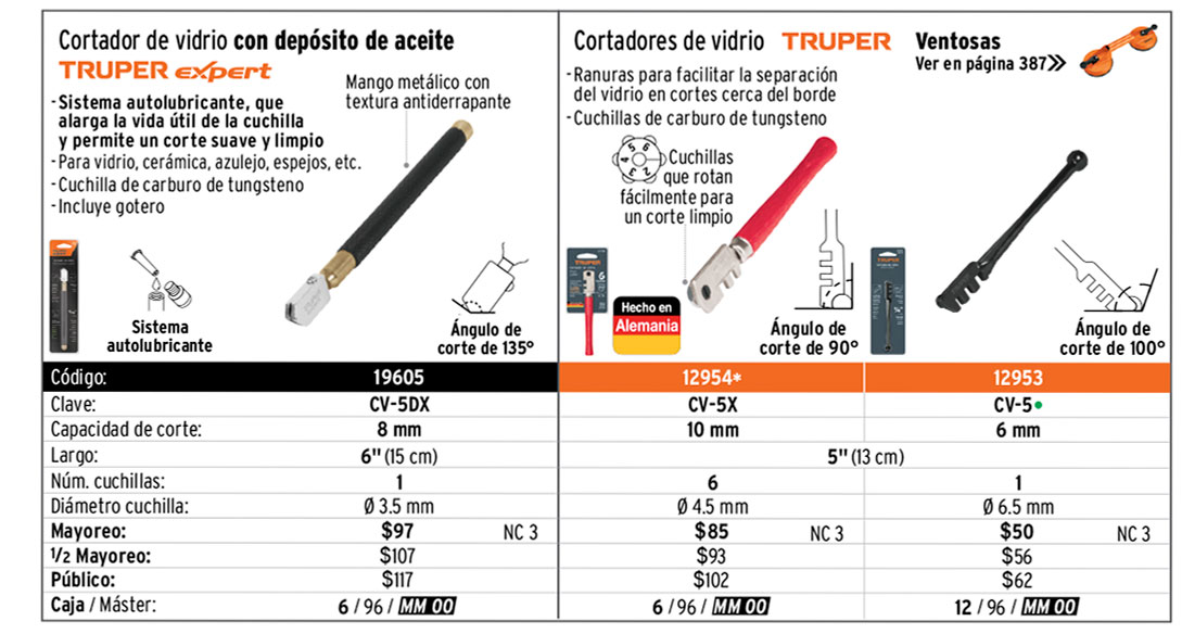 Cortadores de azulejos / Sistemas de nivelación, cortadores de vidrio y contador manual