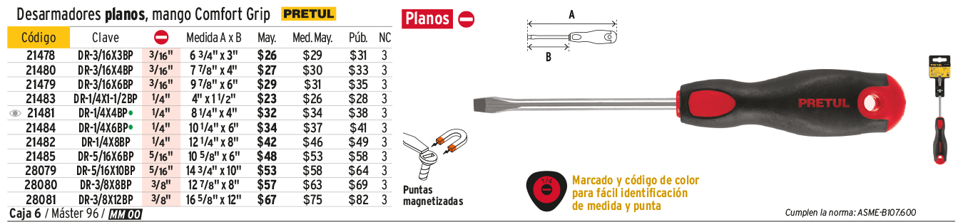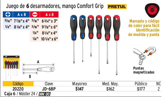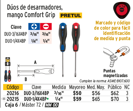 Desarmadores y juegos (punta fija), mango Comfort Grip