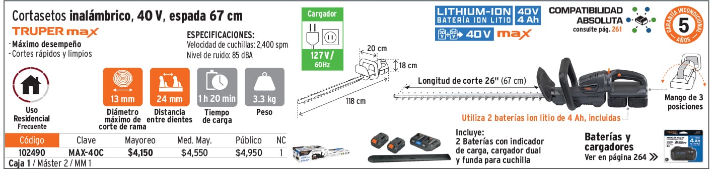 Todos nuestros productos cuentan con garantía. Las cantidades de empaques (cajas o atados) y máster, pueden cambiar y serán ajustadas en el sistema de captura de pedidos.