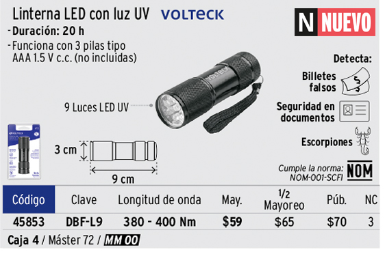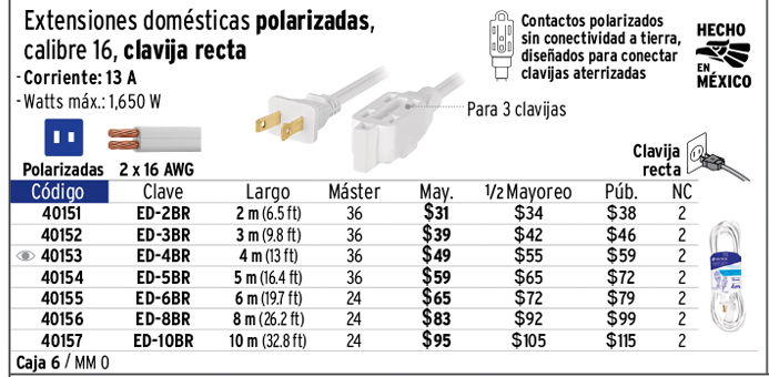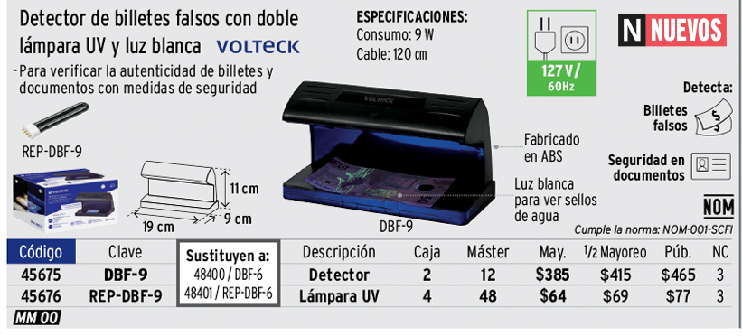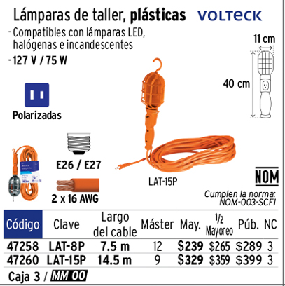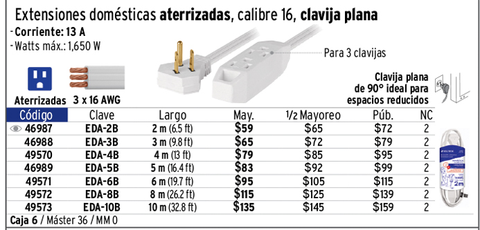 Extensiones eléctricas, lámparas de taller, detectores de humo y de billetes falsos
