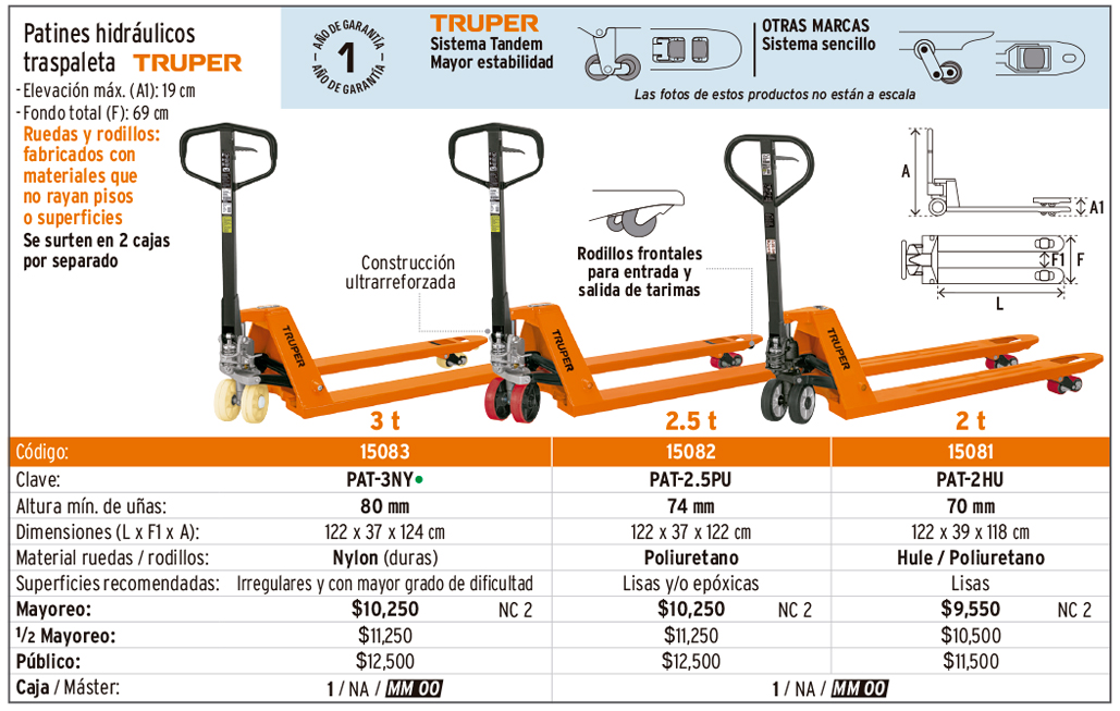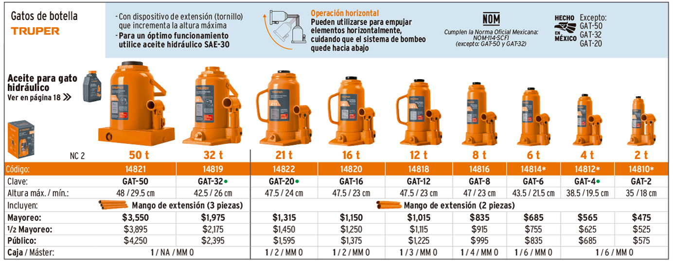 Gatos de botella, gato de tijera, patines traspaleta y torres para auto