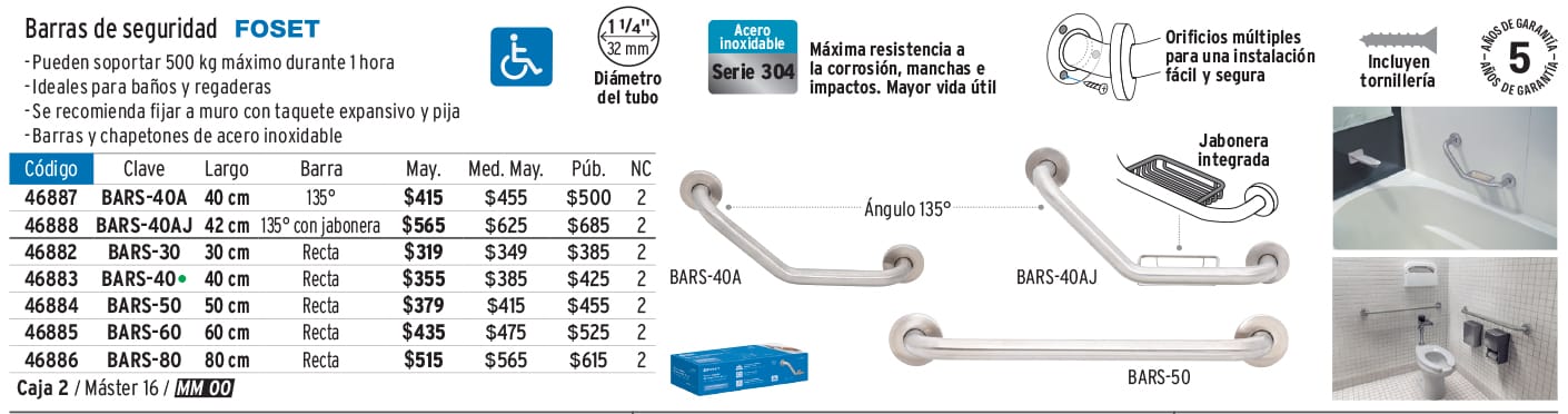 Grifería institucional, barras de seguridad, organizadores y básculas digitales