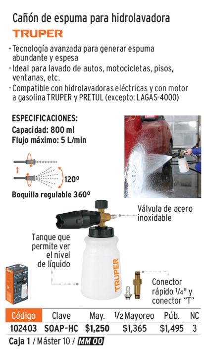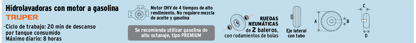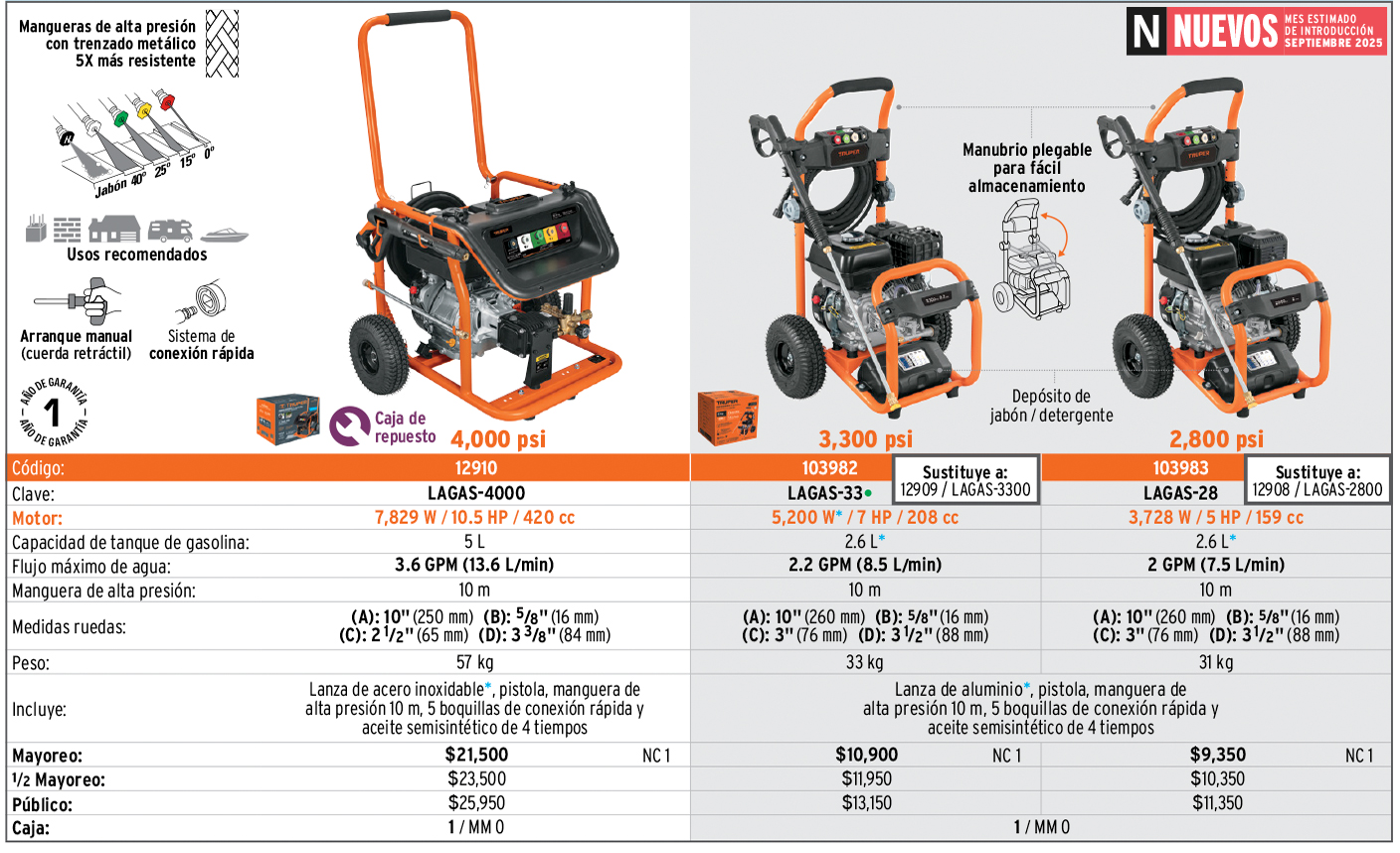 Hidrolavadoras con motor a gasolina, limpiador a vapor y cañón de espuma