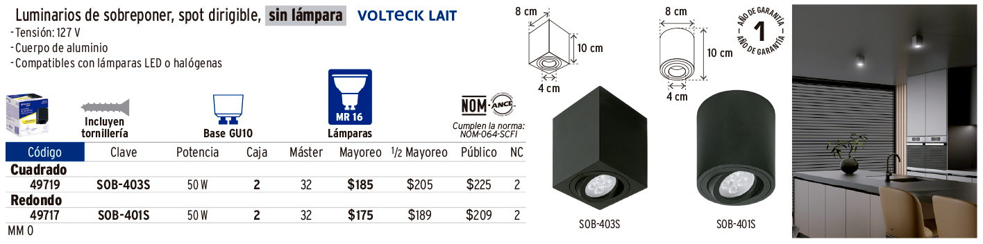 Iluminación interior / Luminarios de cortesía, sockets y luminarios de sobreponer