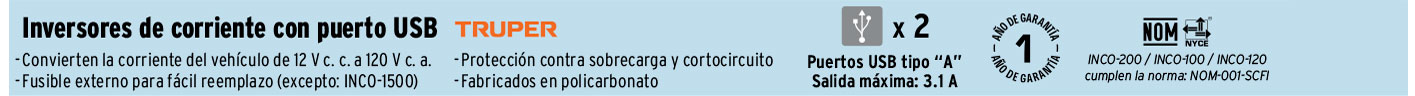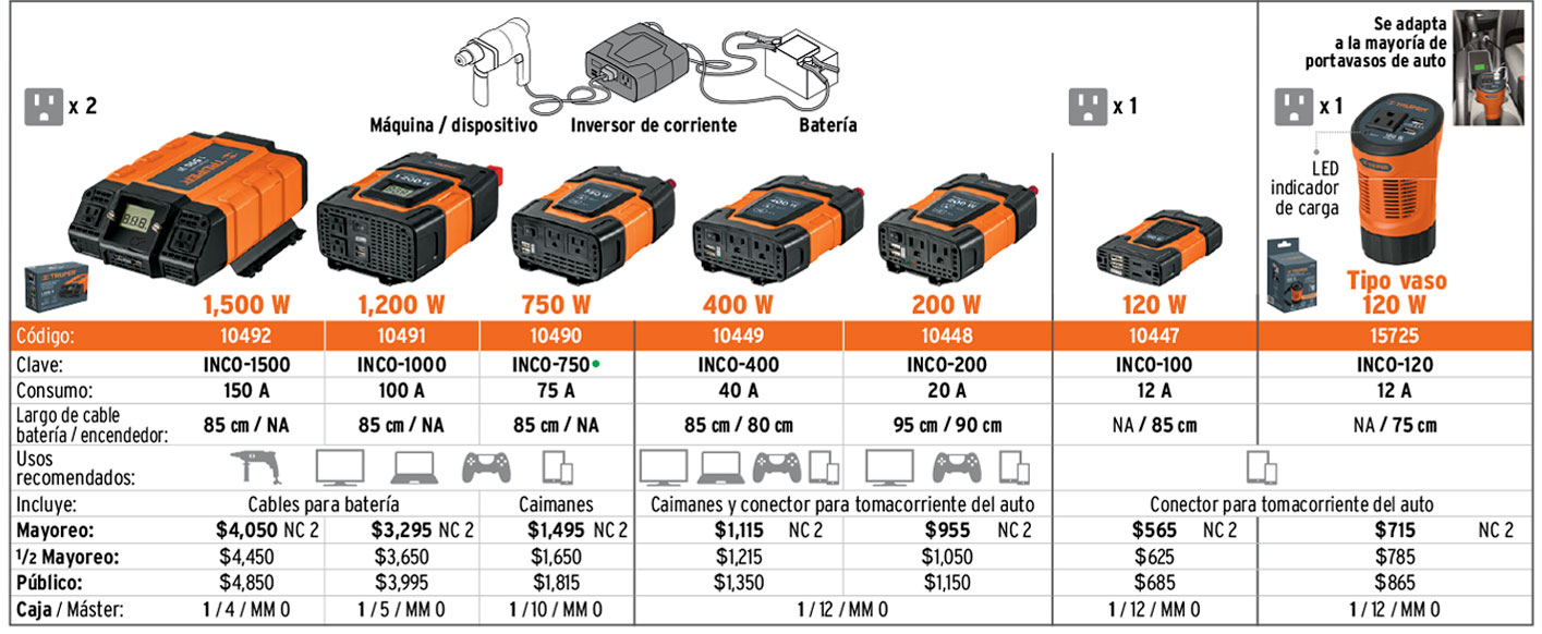Inversores de corriente, cubiertas para auto, cables, triángulos de seguridad y llaves de artillería