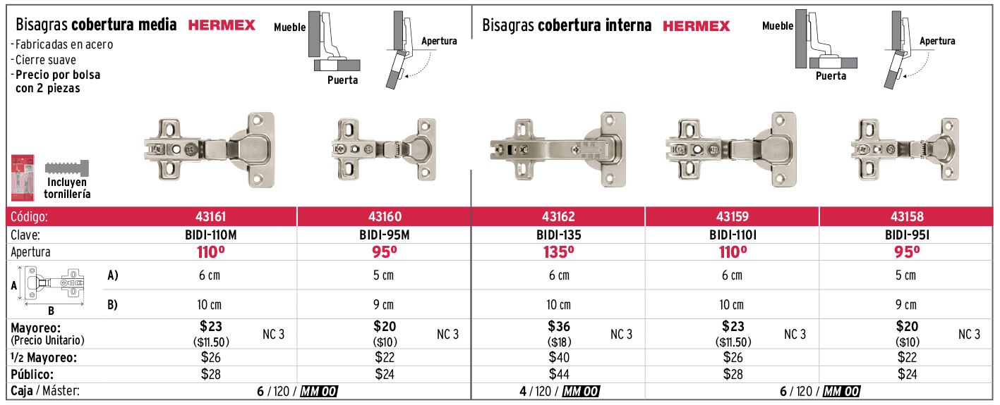 Juegos de 2 bisagras bidimensionales ocultas para gabinetes