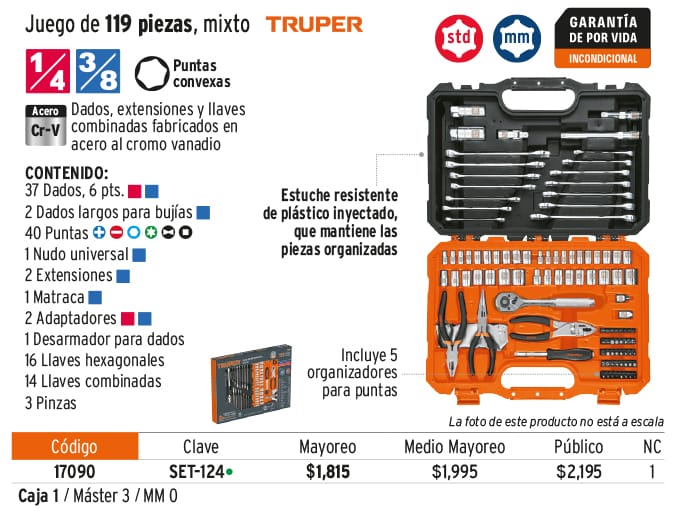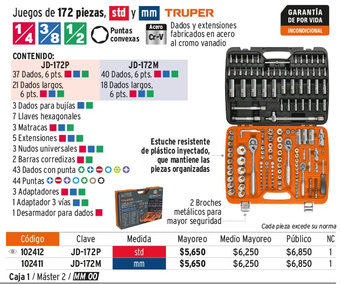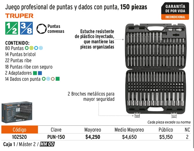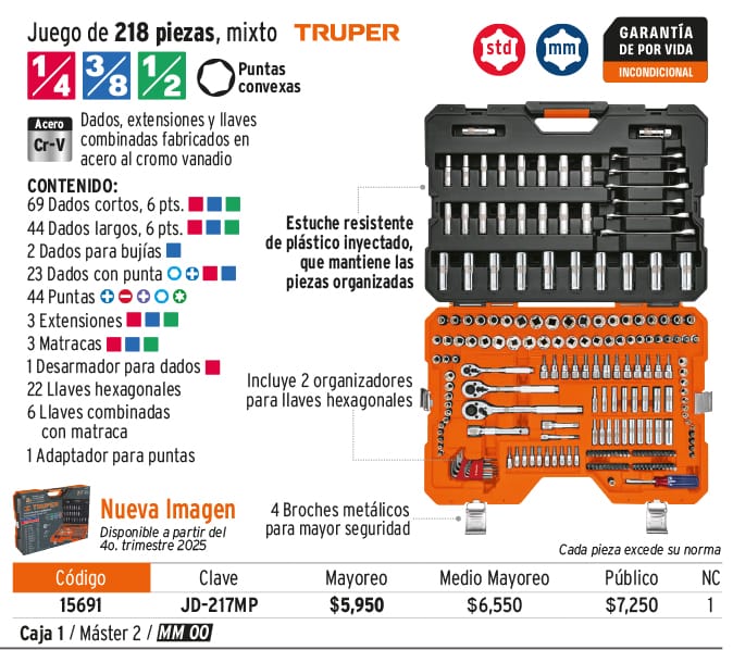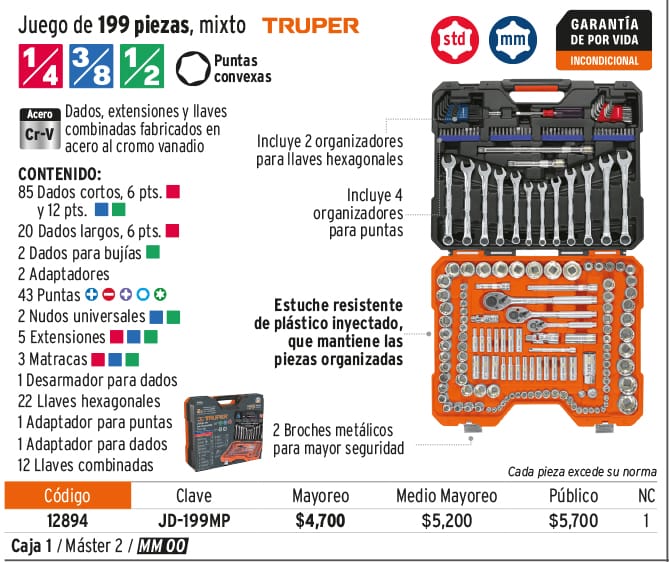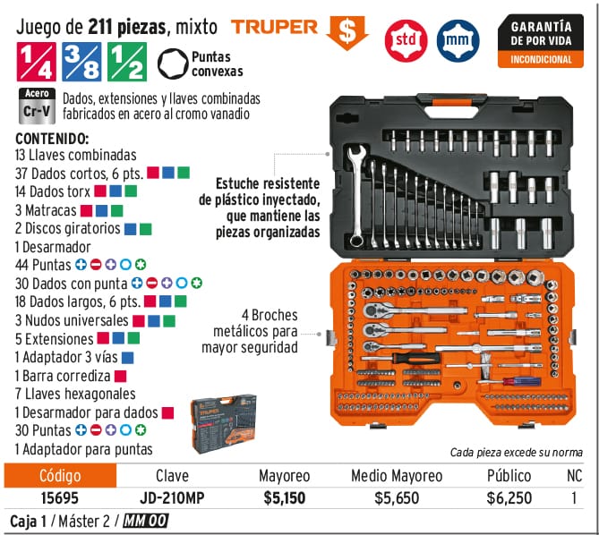 Todos nuestros productos cuentan con garantía. Las cantidades de empaques (cajas o atados) y máster, pueden cambiar y serán ajustadas en el sistema de captura de pedidos.