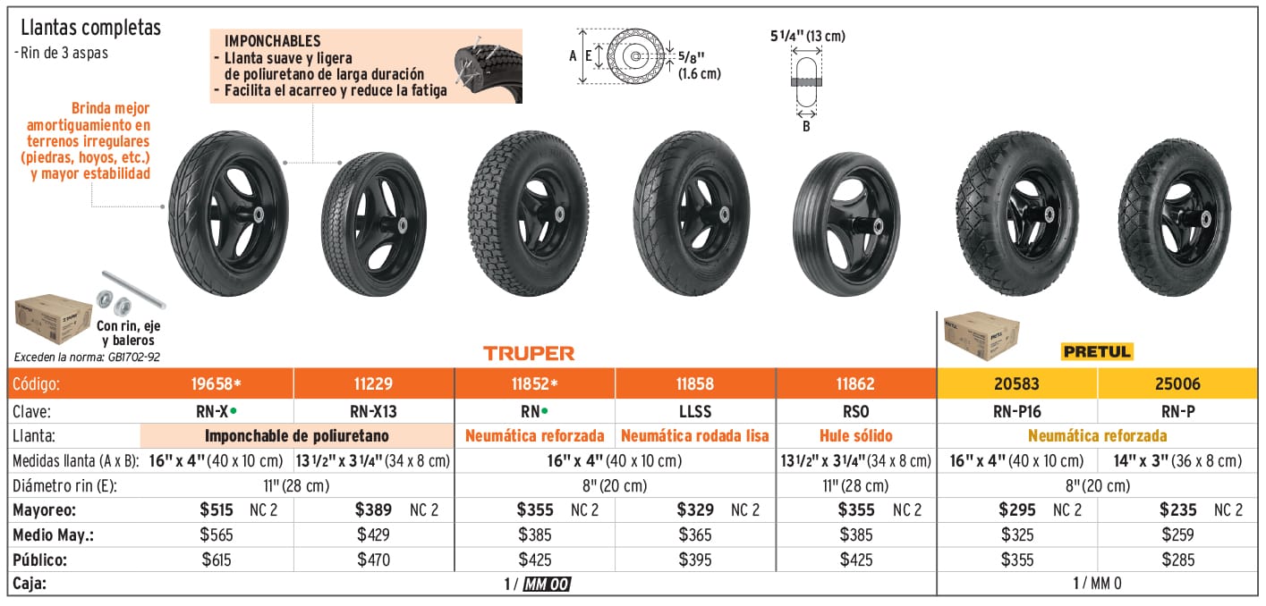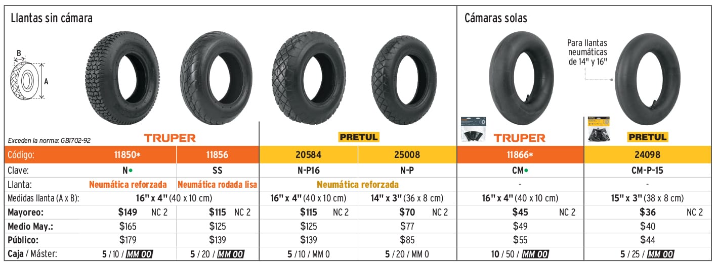 Llantas, cámaras, palancas y accesorios