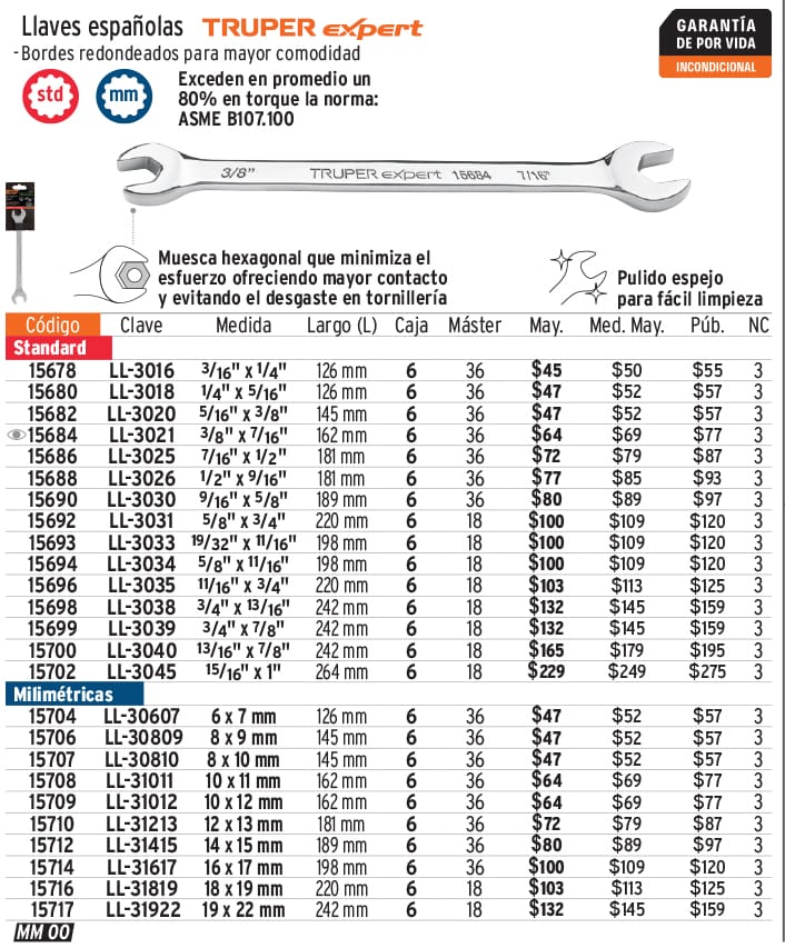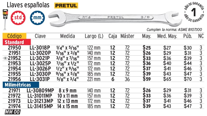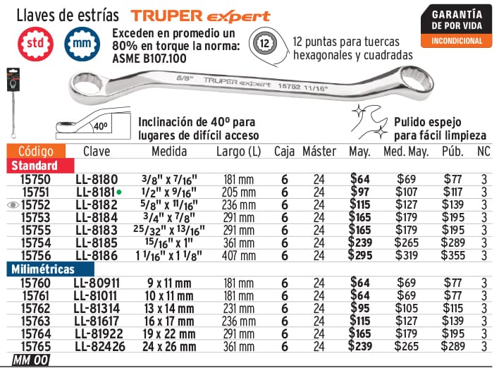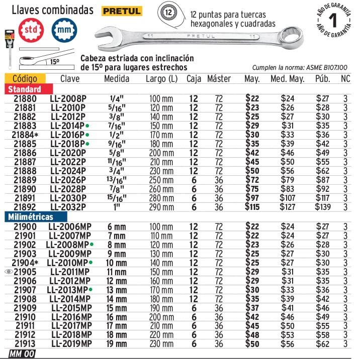 Llaves con cabeza articulada, españolas, de estrías y combinadas