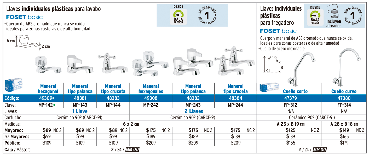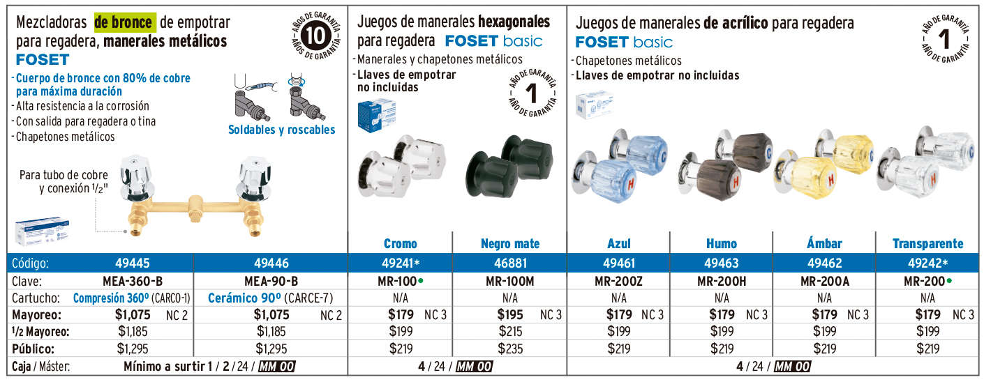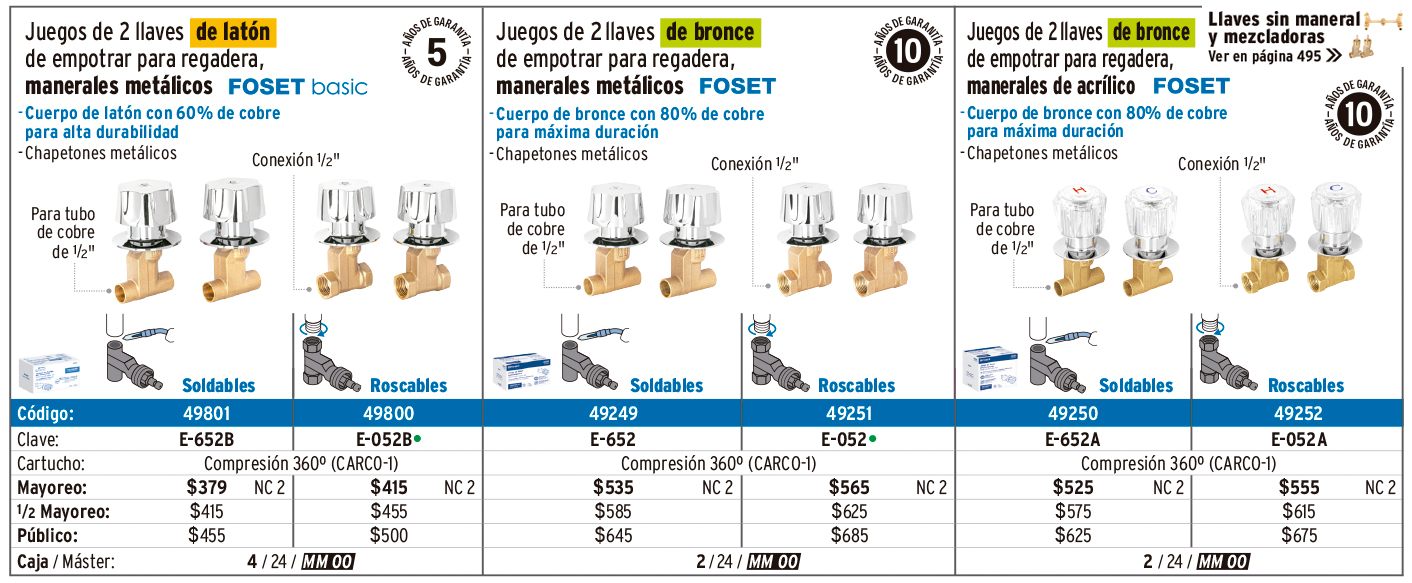 Llaves para lavabo, fregadero y de empotrar, juegos de manerales para regadera