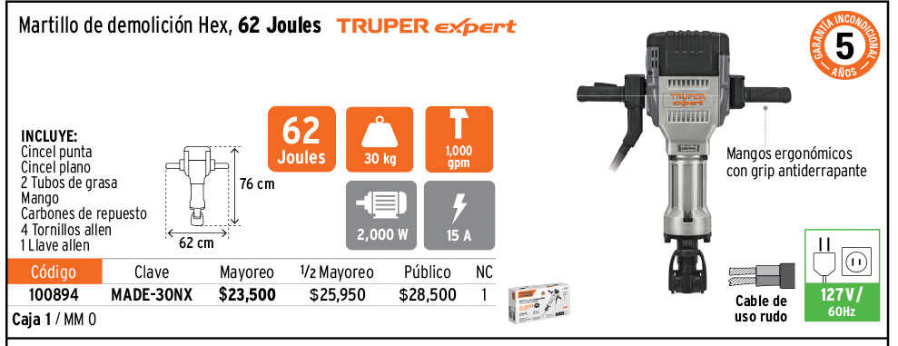 Todos nuestros productos cuentan con garantía. Las cantidades de empaques (cajas o atados) y máster, pueden cambiar y serán ajustadas en el sistema de captura de pedidos.