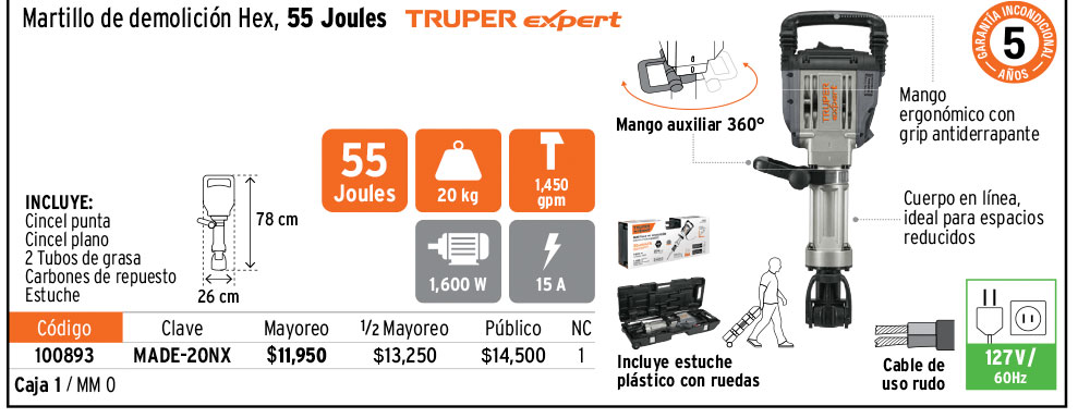 Martillos de demolición Hex, transportador para martillos y mueble exhibidor