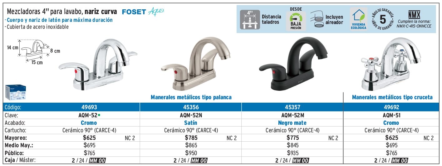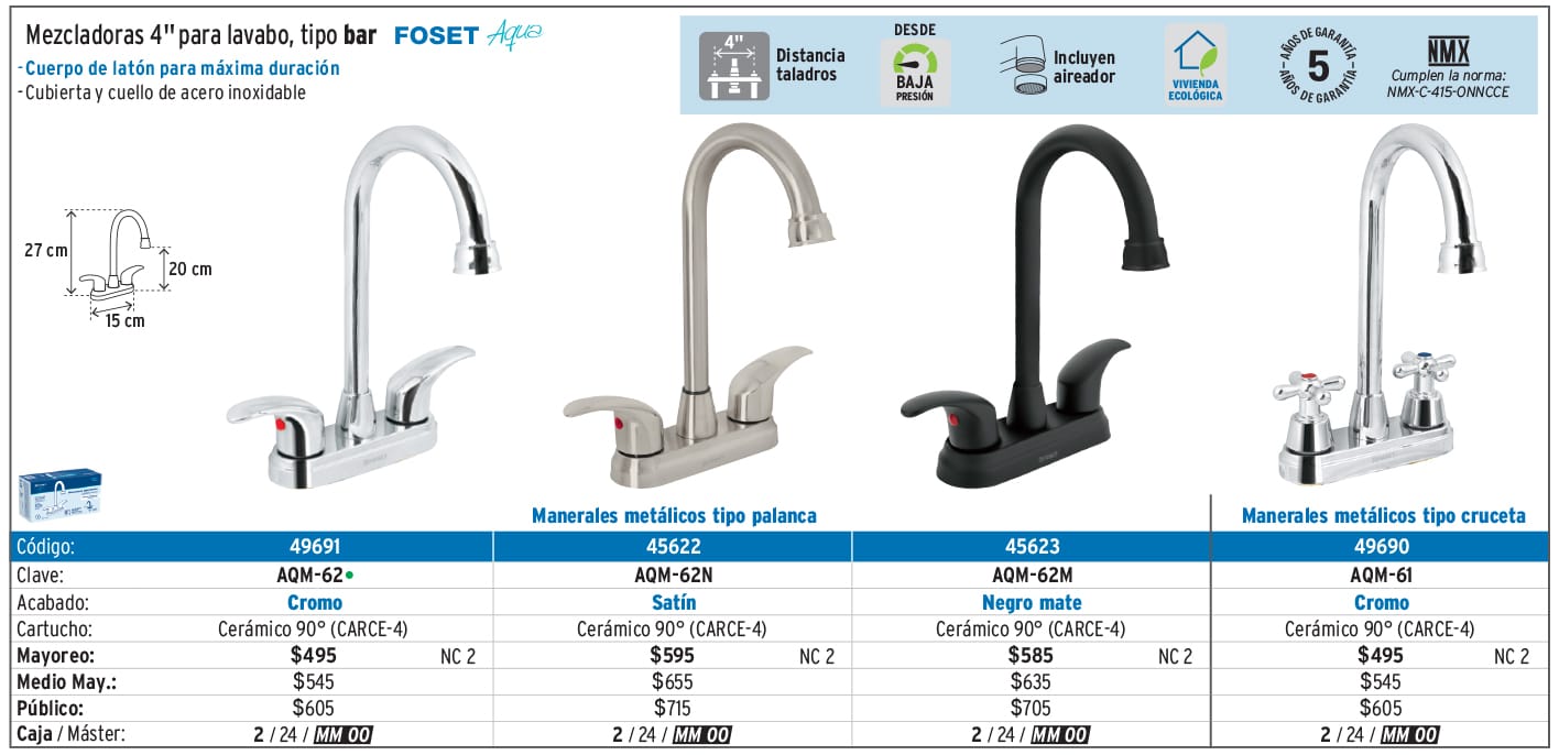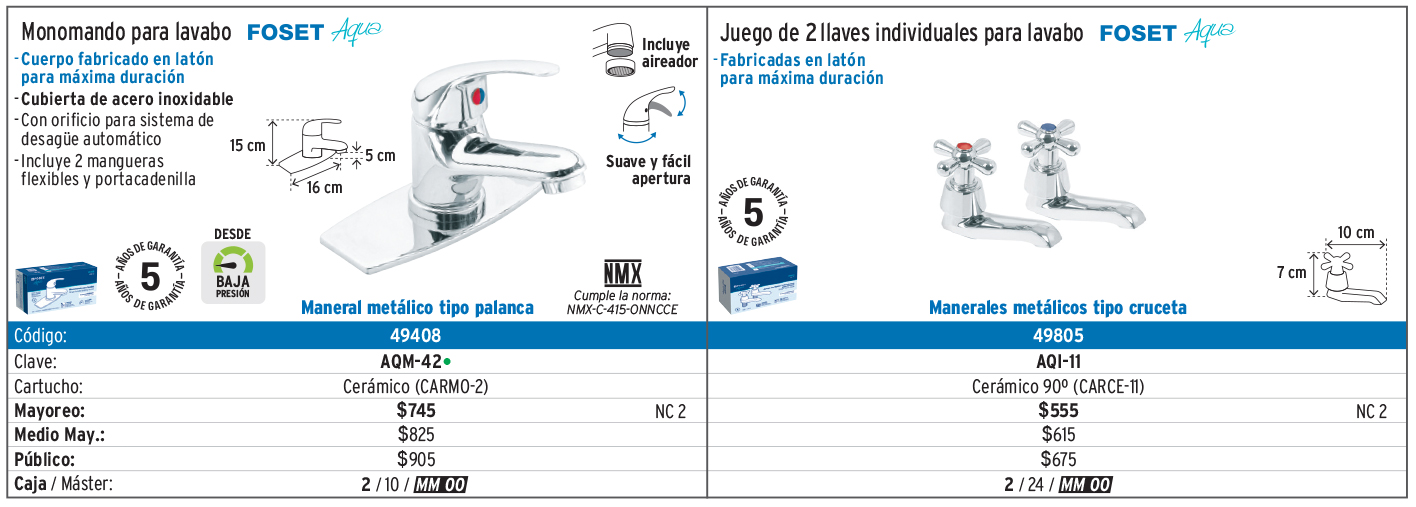 Mezcladoras, monomando para lavabo y llaves individuales