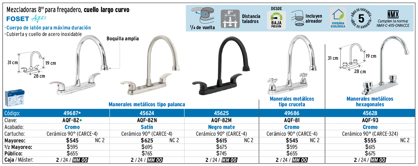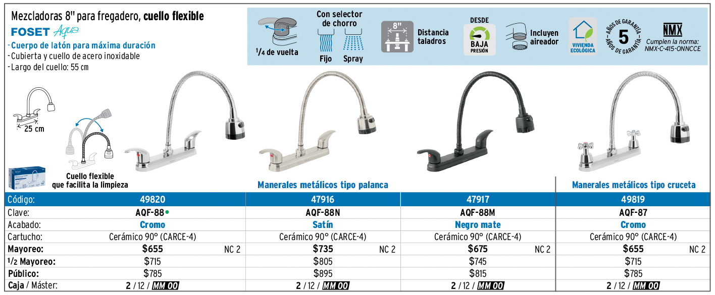 Mezcladoras para fregadero cuello curvo y cuello flexible