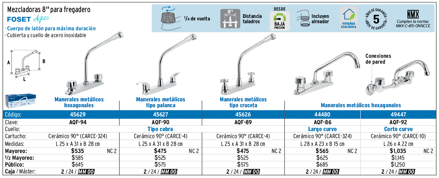 Todos nuestros productos cuentan con garantía. Las cantidades de empaques (cajas o atados) y máster, pueden cambiar y serán ajustadas en el sistema de captura de pedidos.