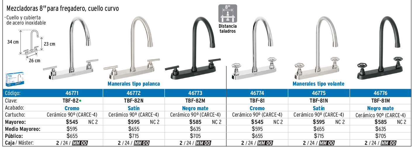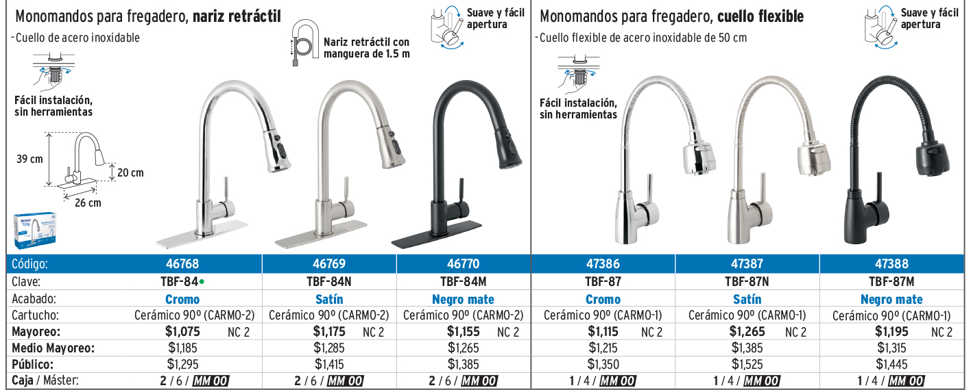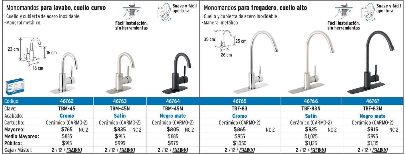 Monomandos para lavabo y fregadero y mezcladoras para fregadero