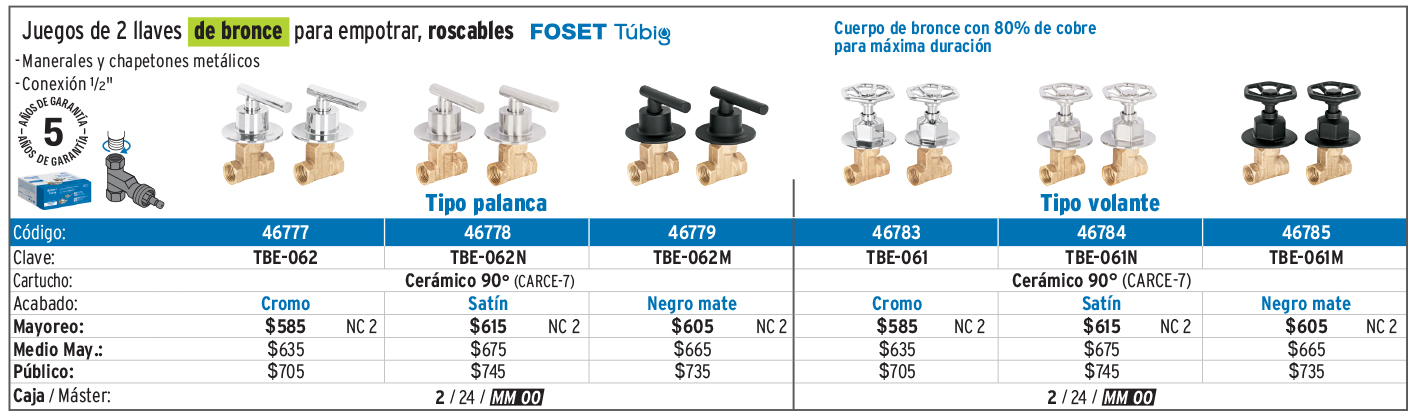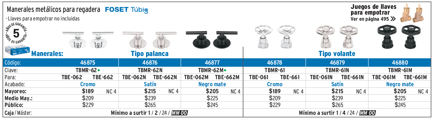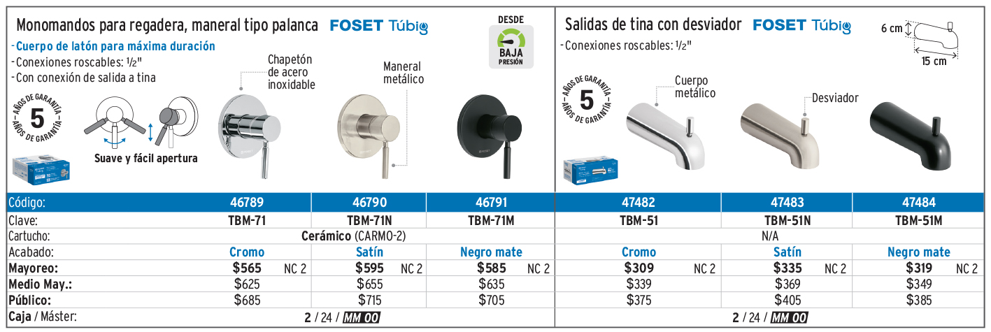 Monomandos, salidas de tina, llaves y manerales para regadera