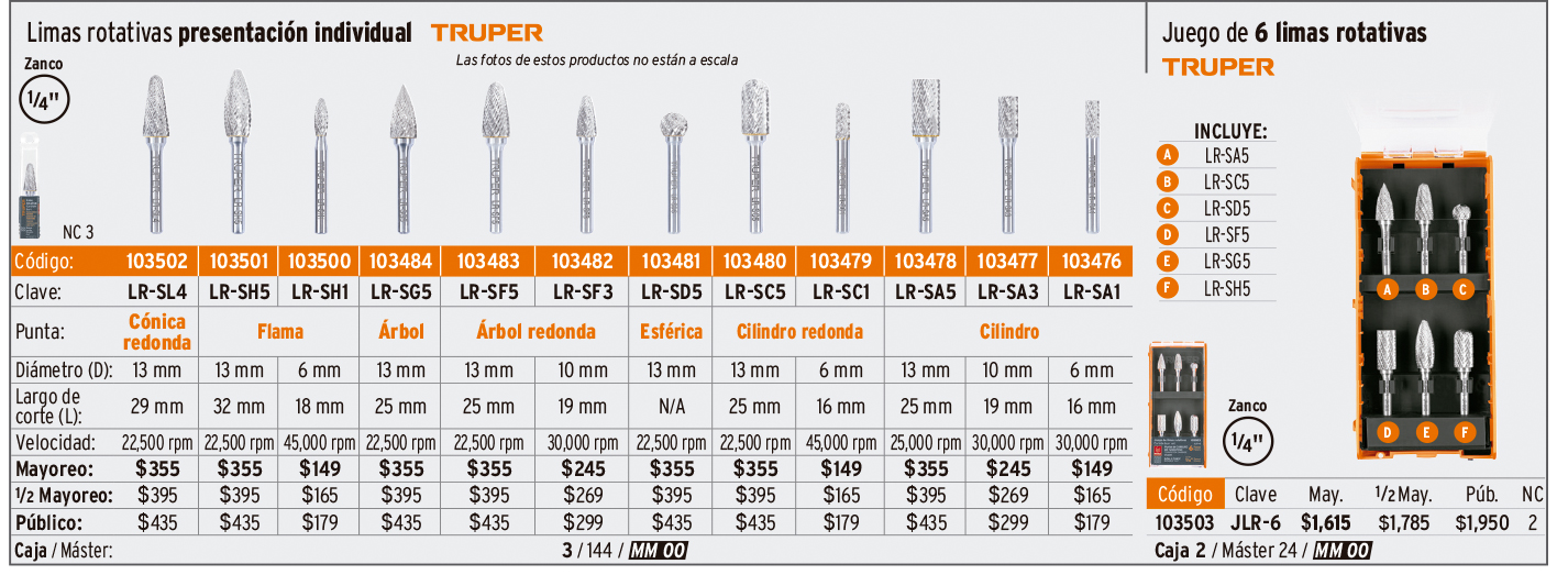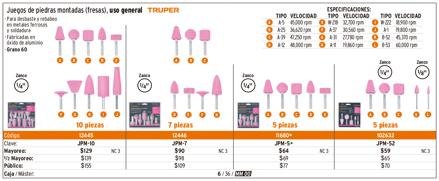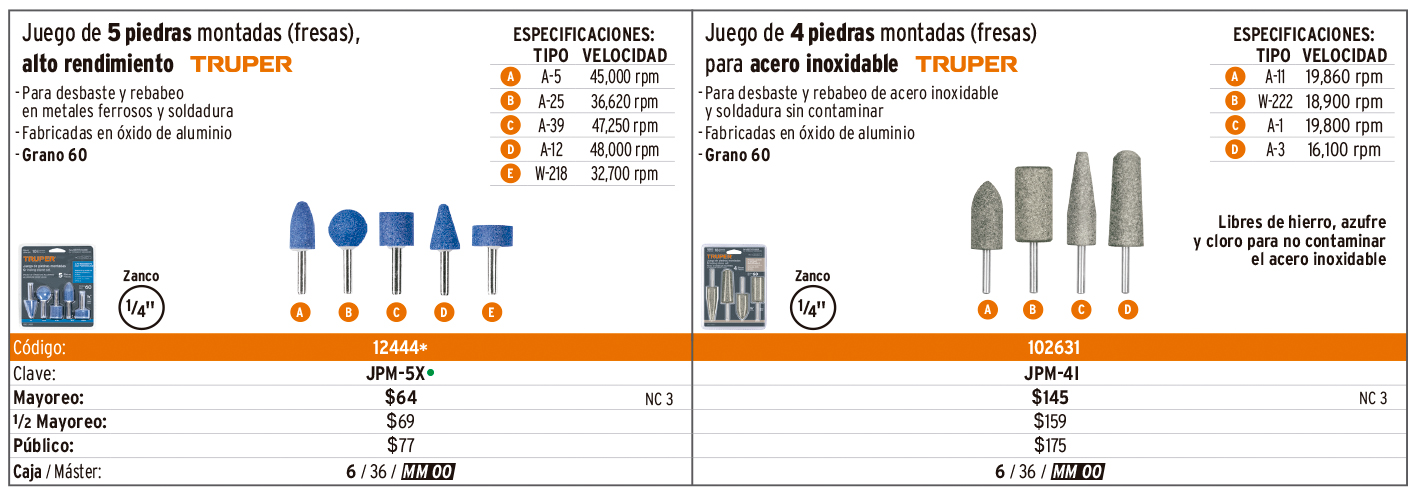 Piedras montadas y limas rotativas