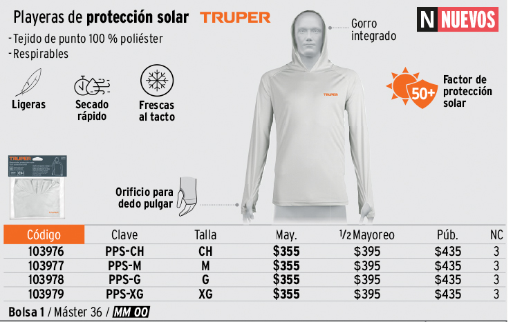 Todos nuestros productos cuentan con garantía. Las cantidades de empaques (cajas o atados) y máster, pueden cambiar y serán ajustadas en el sistema de captura de pedidos.
