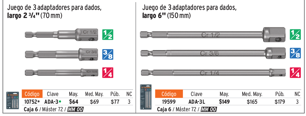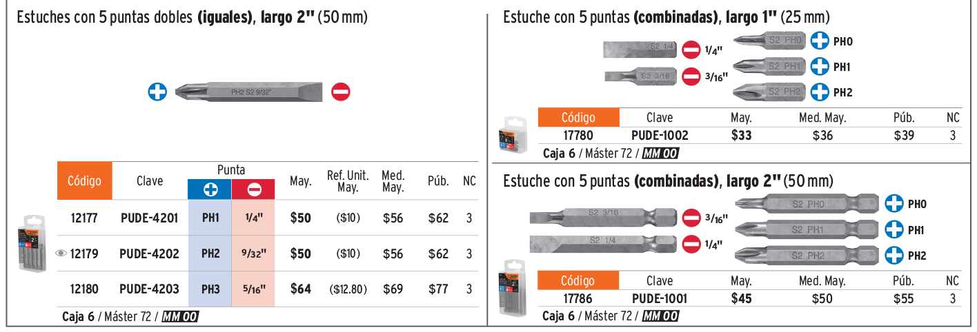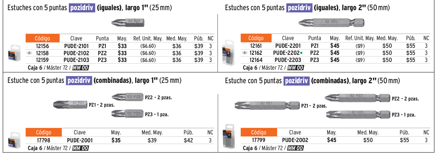 Puntas para desarmador combinadas, pozidriv y adaptadores para dados