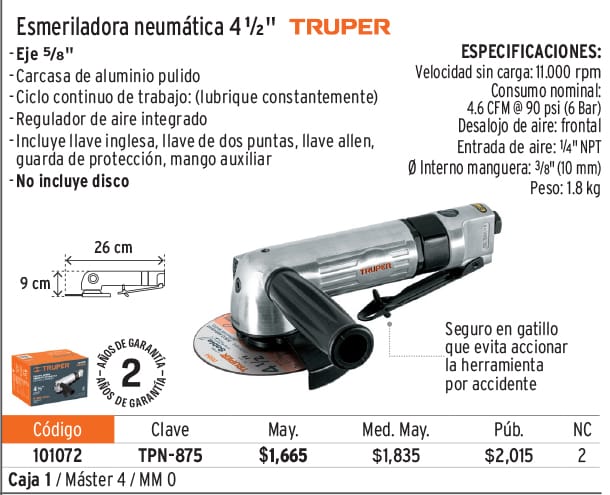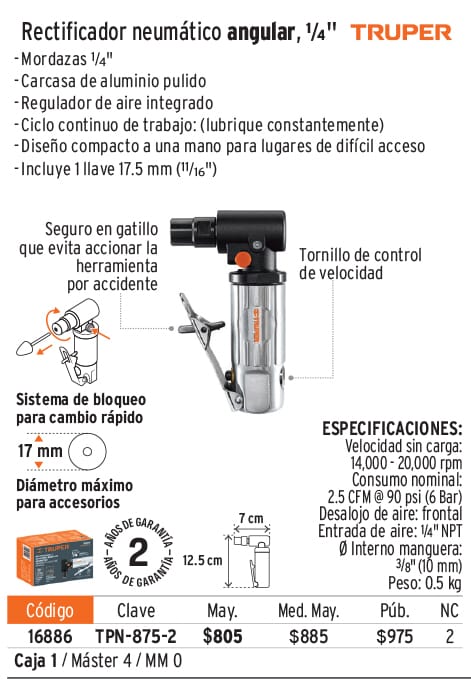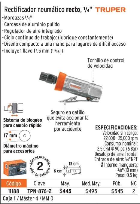 Rectificadores, lijadora, esmeriladora, taladros y matracas neumáticas