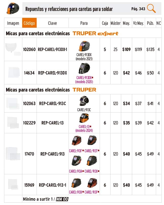 Refacciones para cautines y repuestos para caretas para soldar