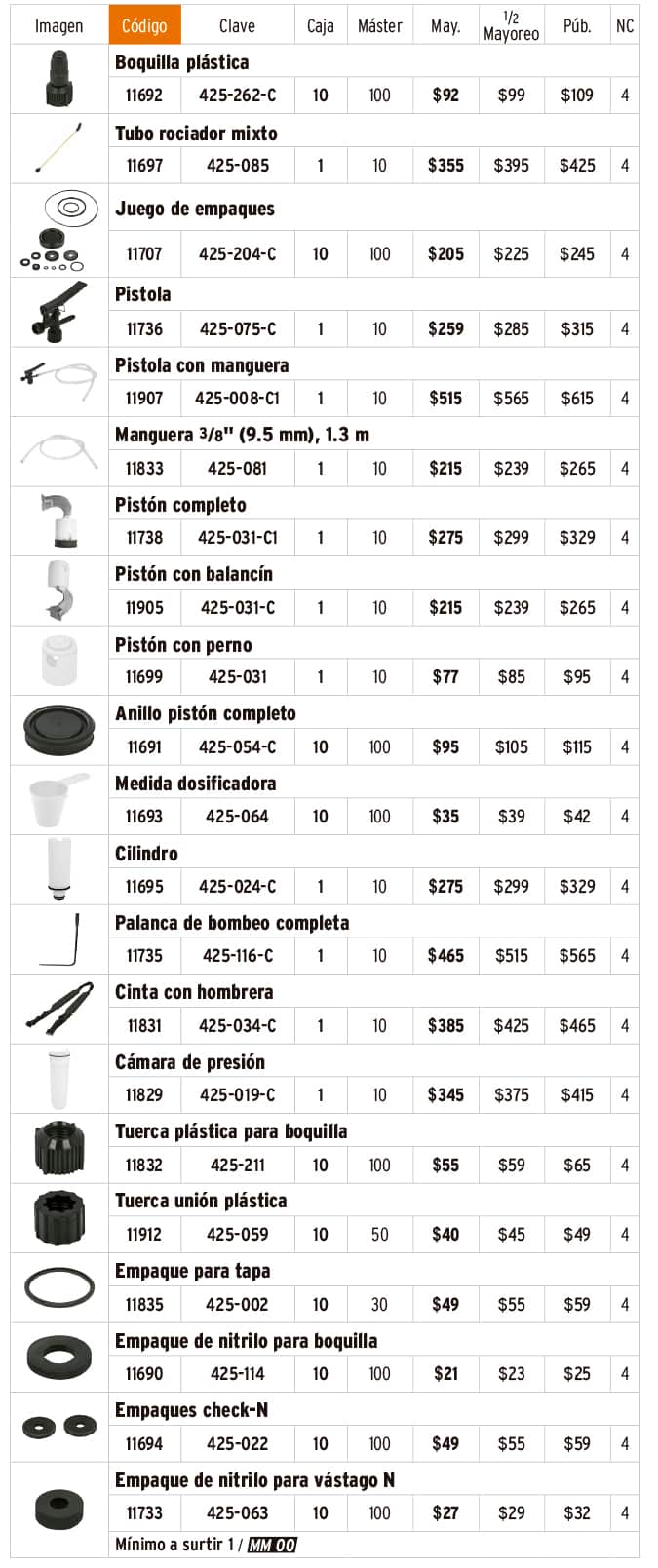 Refacciones para fumigadores