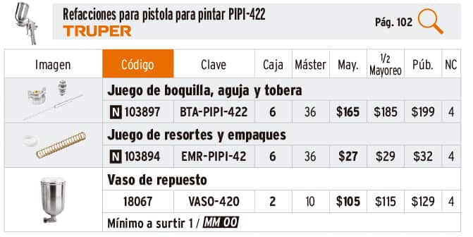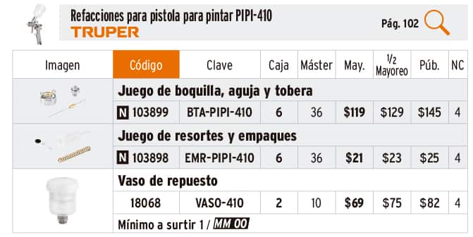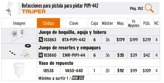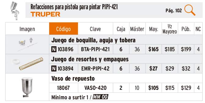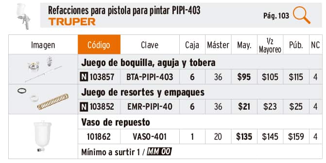 Refacciones para pistolas para pintar