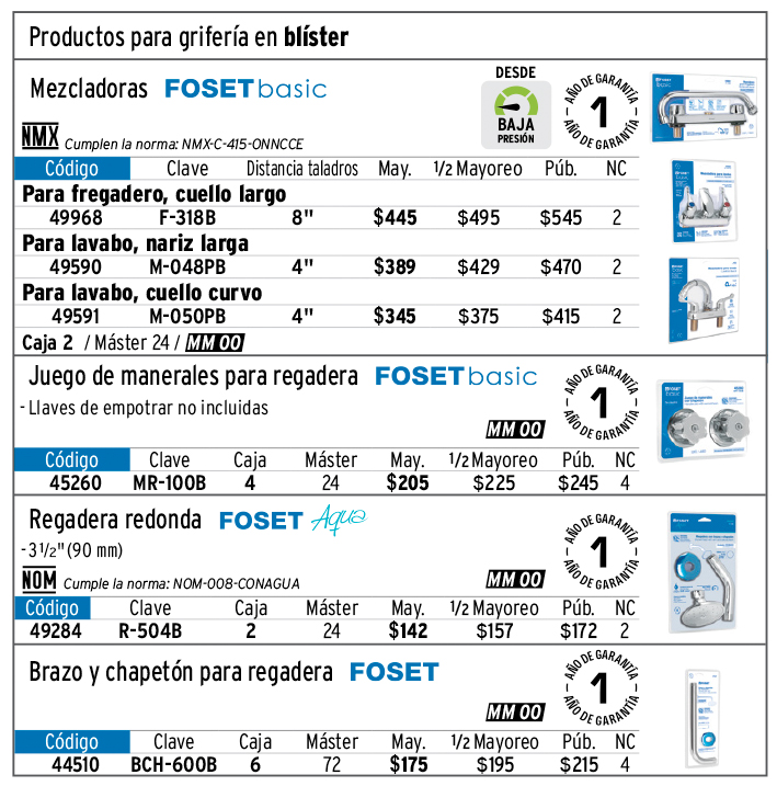 Regaderas eléctricas, llaves de empotrar para regadera, accesorios para regaderas de teléfono y grifería en blíster
