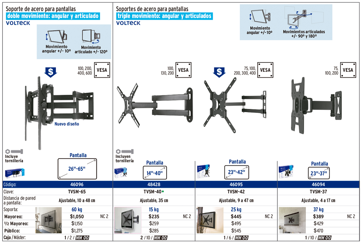 Todos nuestros productos cuentan con garantía. Las cantidades de empaques (cajas o atados) y máster, pueden cambiar y serán ajustadas en el sistema de captura de pedidos.