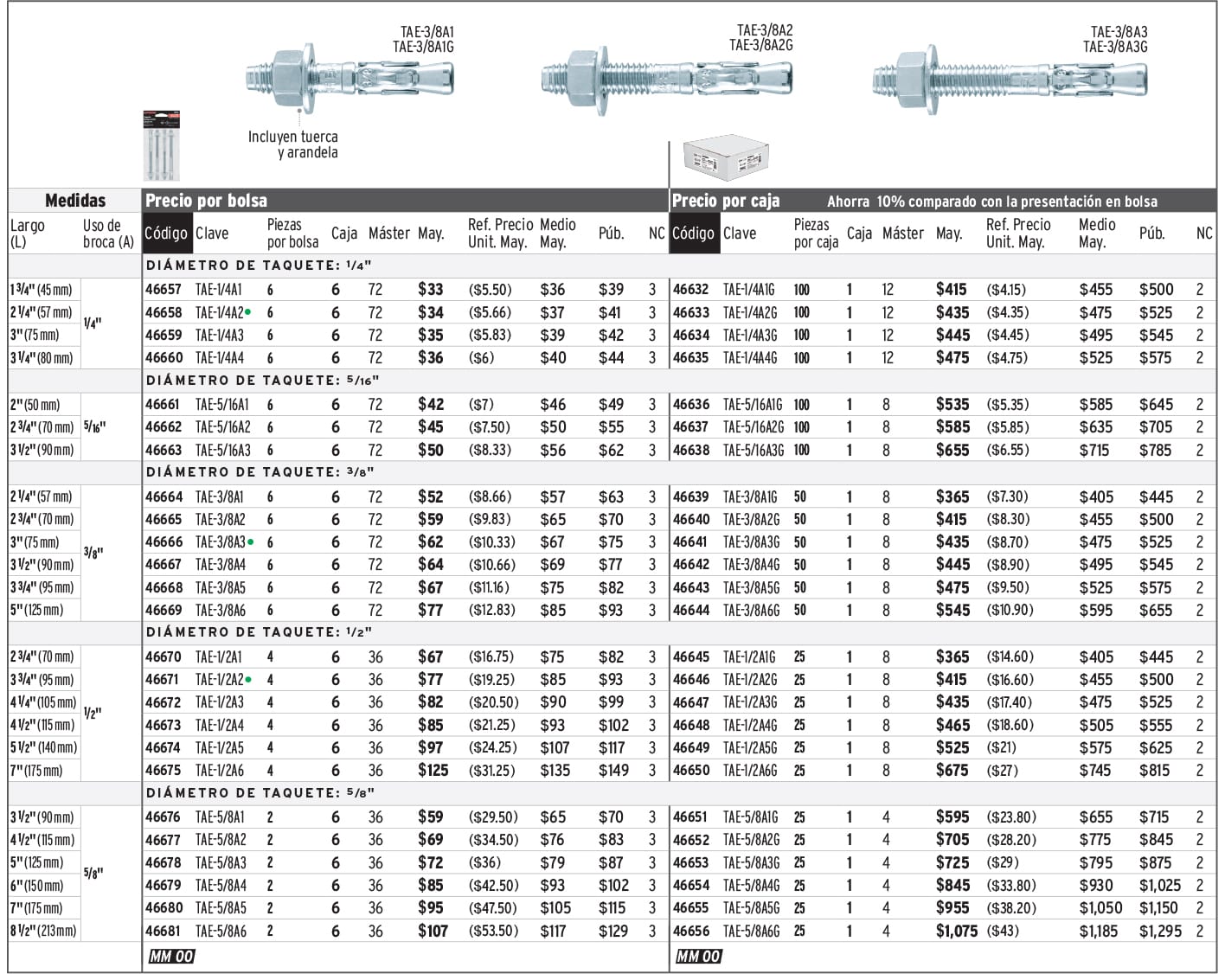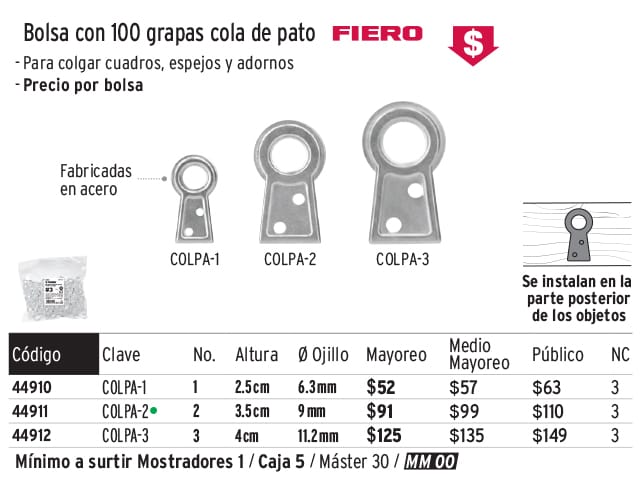 Tornillería / Taquetes arpón, colgantes y grapas