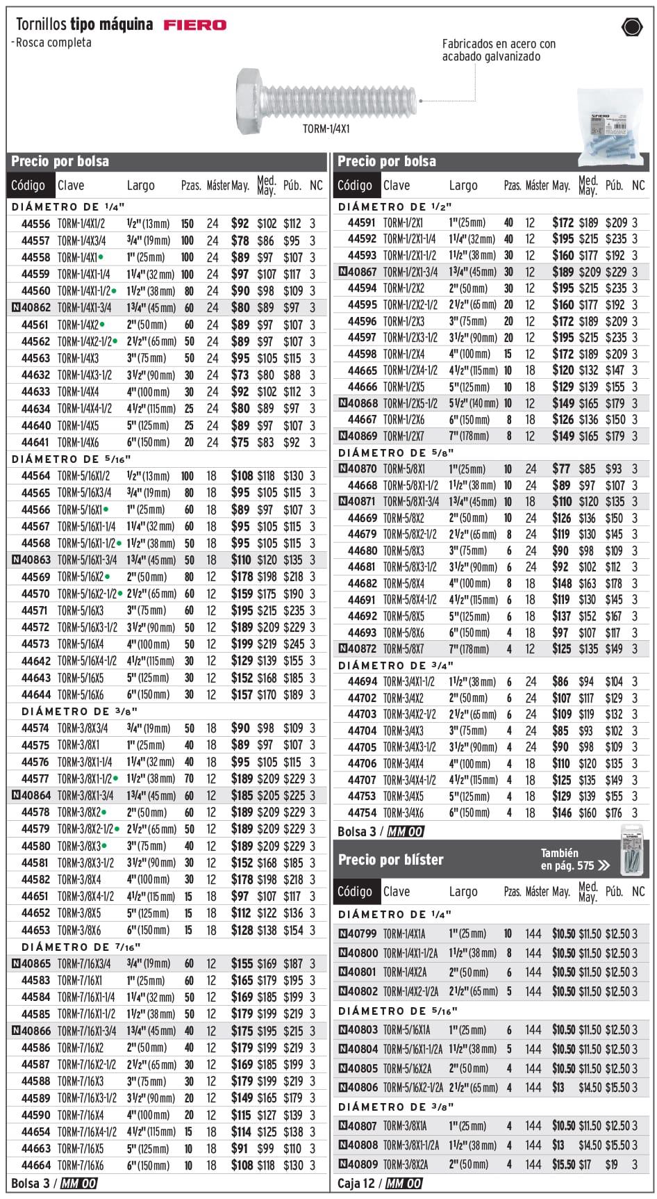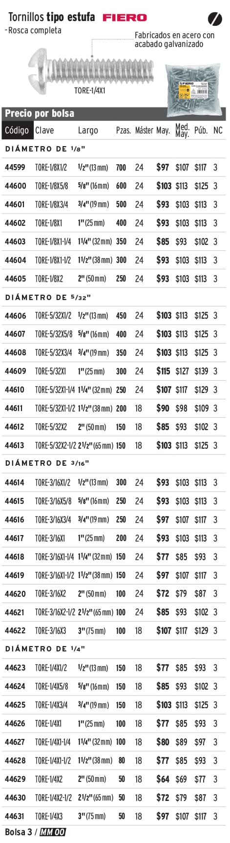 Tornillería / Tornillos tipo máquina y tipo estufa