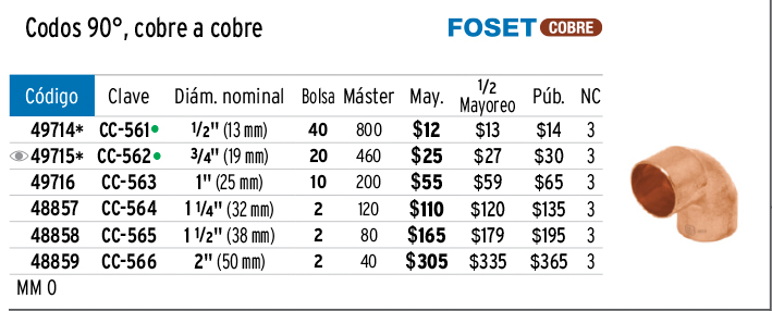 Tubos de cobre, conexiones de cobre y de latón cobrizado